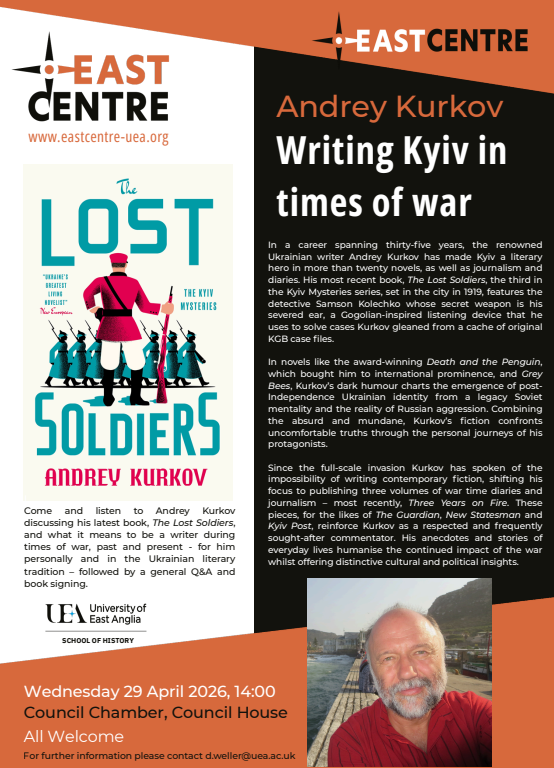 Our friends at the East Centre are hosting Ukrainian writer Andrey Kurkov this April that will be of interest to those involved with Area Studies: